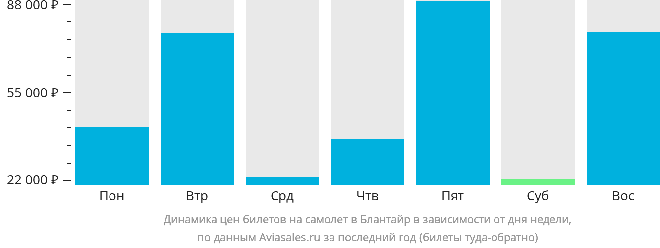 В зависимости от количества дней, оставшихся до вылета, цена билета на самолёт из в Блантайр может измениться более чем на 80%.