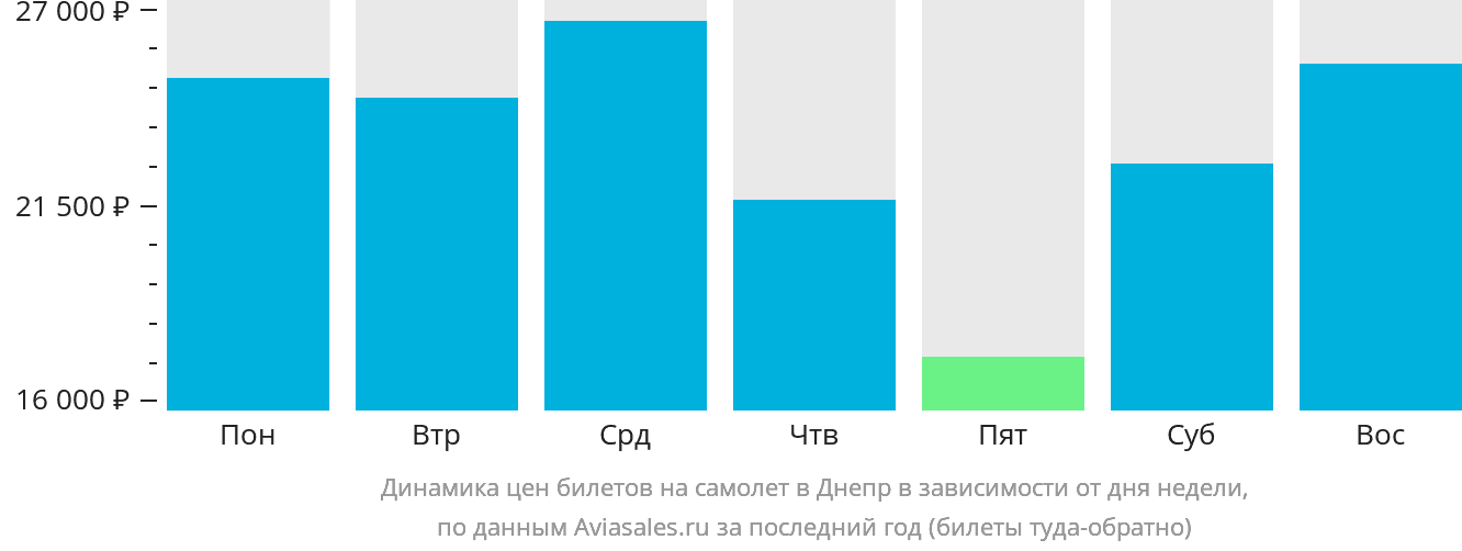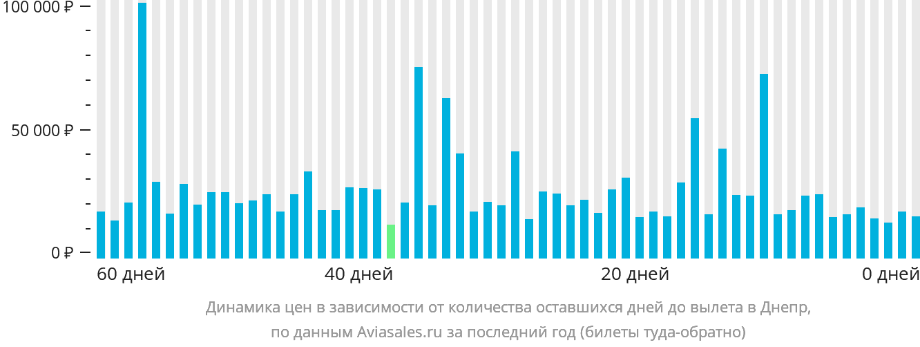 В зависимости от количества дней, оставшихся до вылета, цена билета на самолёт в Днепр может измениться более чем в два раза.