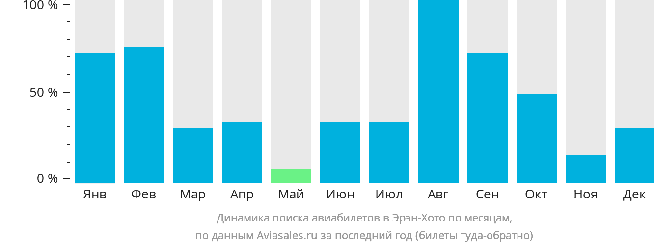 Авиасейлс советует купить авиабилеты в Эрэн-Хото заранее, чтобы вы могли выбирать условия перелёта, ориентируясь на свои пожелания и финансовые возможности.