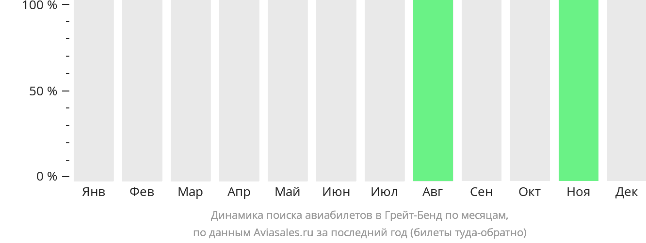 Авиасейлс советует купить авиабилеты в Грейт-Бенд заранее, чтобы вы могли выбирать условия перелёта, ориентируясь на свои пожелания и финансовые возможности.