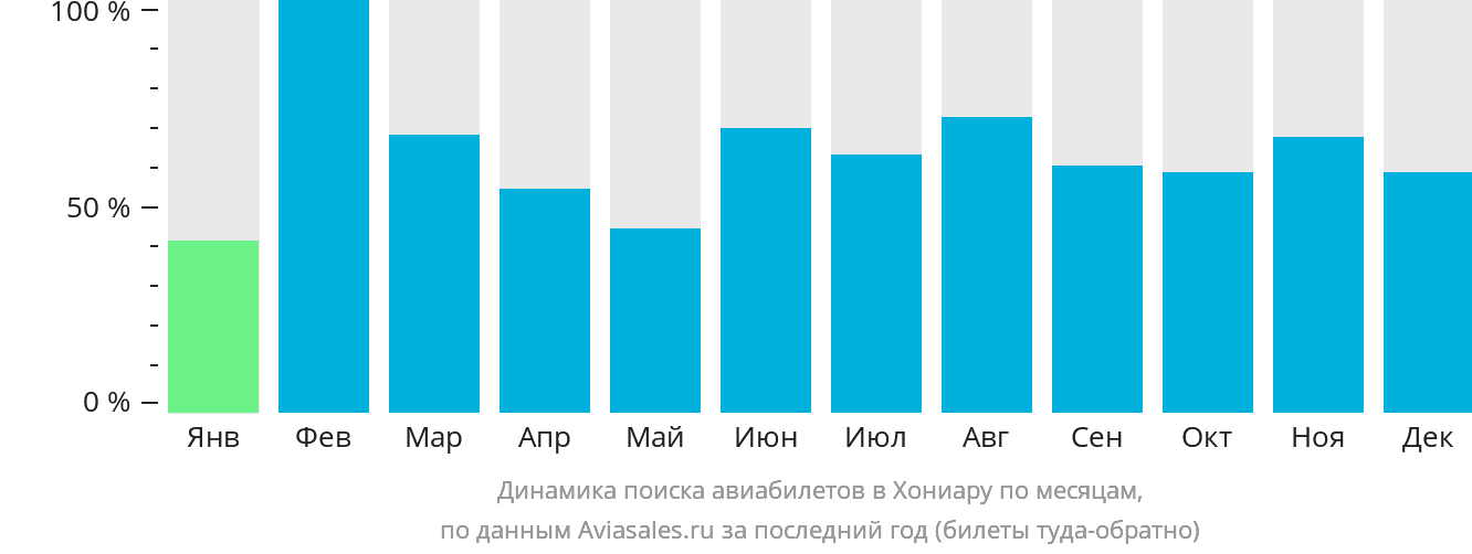Наибольшей популярностью билеты в Хониару пользуются в июле, августе и декабре. Низким сезоном для покупки билетов является Март, Май и Октябрь.