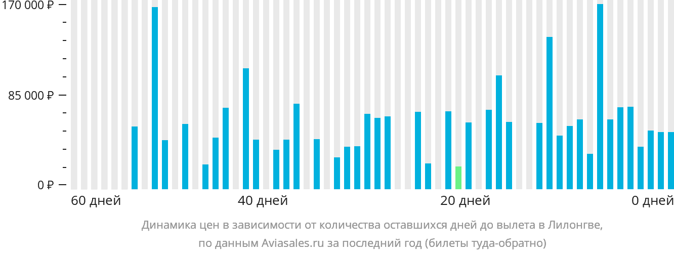 В зависимости от количества дней, оставшихся до вылета, цена билета на самолёт из в Лилонгве может измениться более чем на 92%.