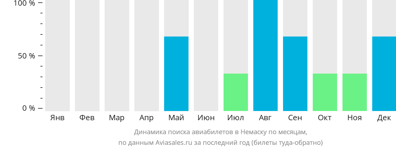 Авиасейлс советует купить авиабилеты в Немаску заранее, чтобы вы могли выбирать условия перелёта, ориентируясь на свои пожелания и финансовые возможности.