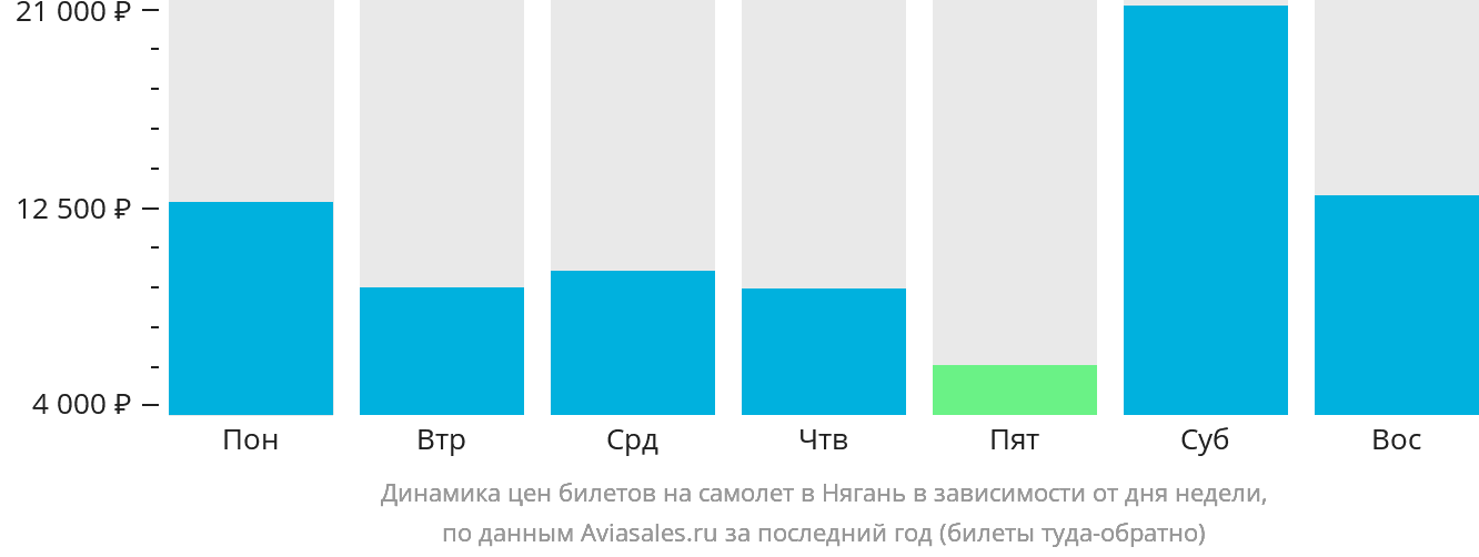 В зависимости от количества дней, оставшихся до вылета, цена билета на самолёт из в Нягань может измениться более чем на 91%.
