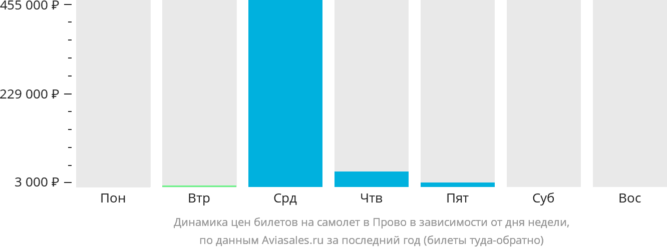 В зависимости от количества дней, оставшихся до вылета, цена билета на самолёт из в Прово может измениться более чем на 90%.