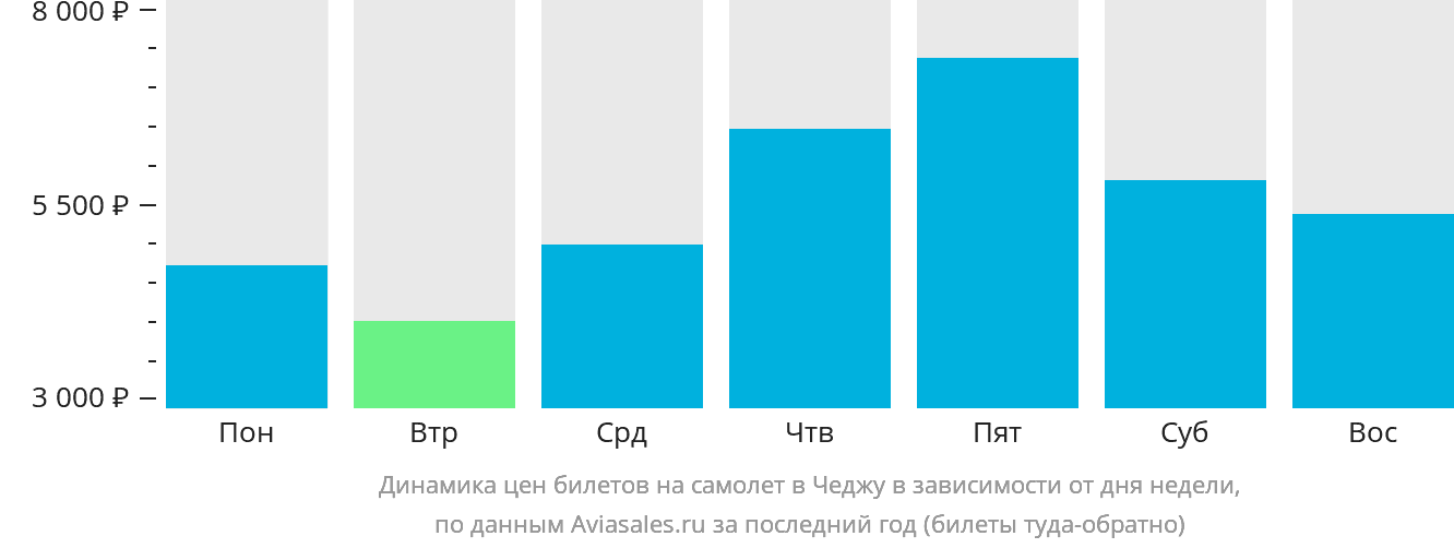 В зависимости от количества дней, оставшихся до вылета, цена билета на самолёт в Чеджу может измениться более чем в два раза.