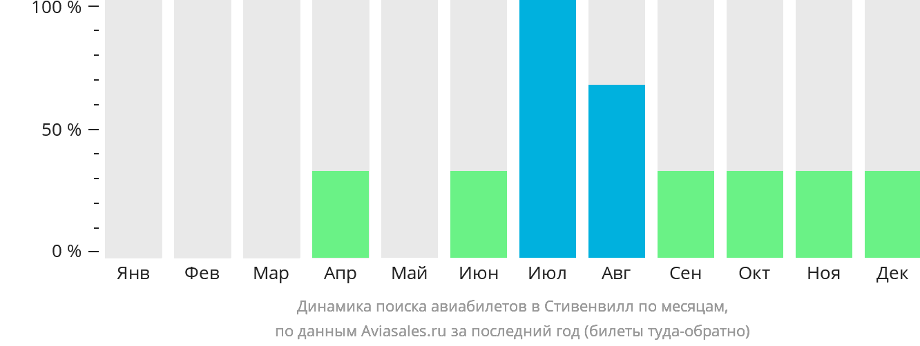 Авиасейлс советует купить авиабилеты в Стивенвилл заранее, чтобы вы могли выбирать условия перелёта, ориентируясь на свои пожелания и финансовые возможности.