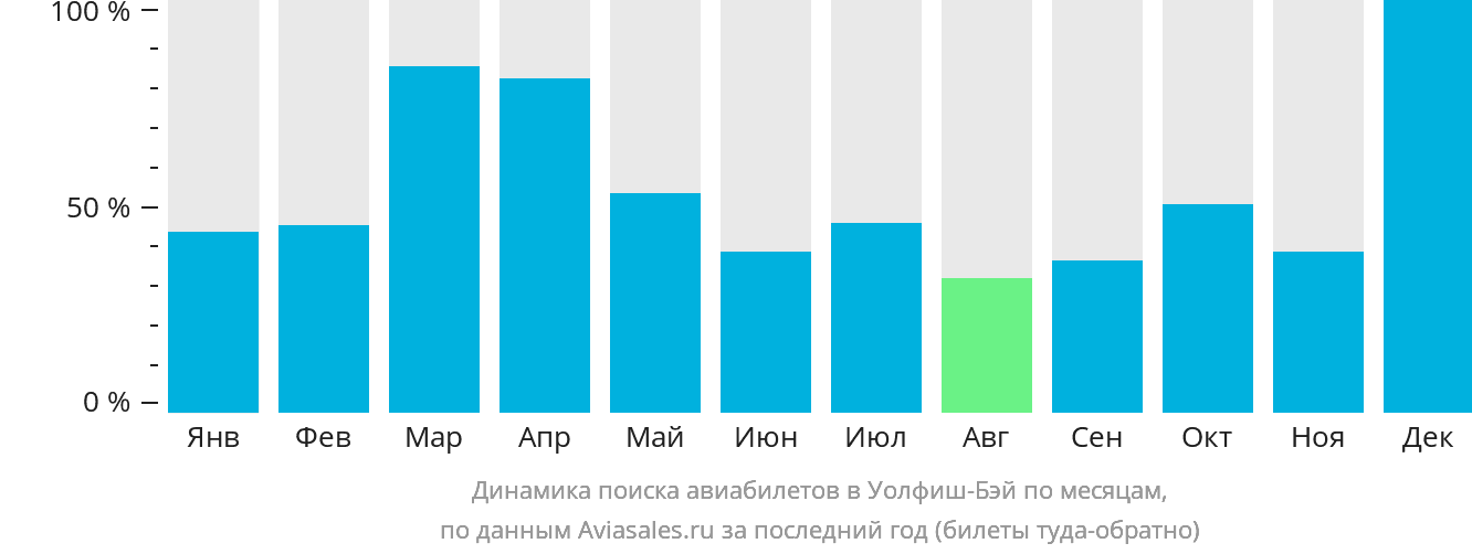 Наибольшей популярностью билеты в Уолфиш-Бэй пользуются в январе, октябре и декабре. Низким сезоном для покупки билетов является Май, Июнь и Июль.