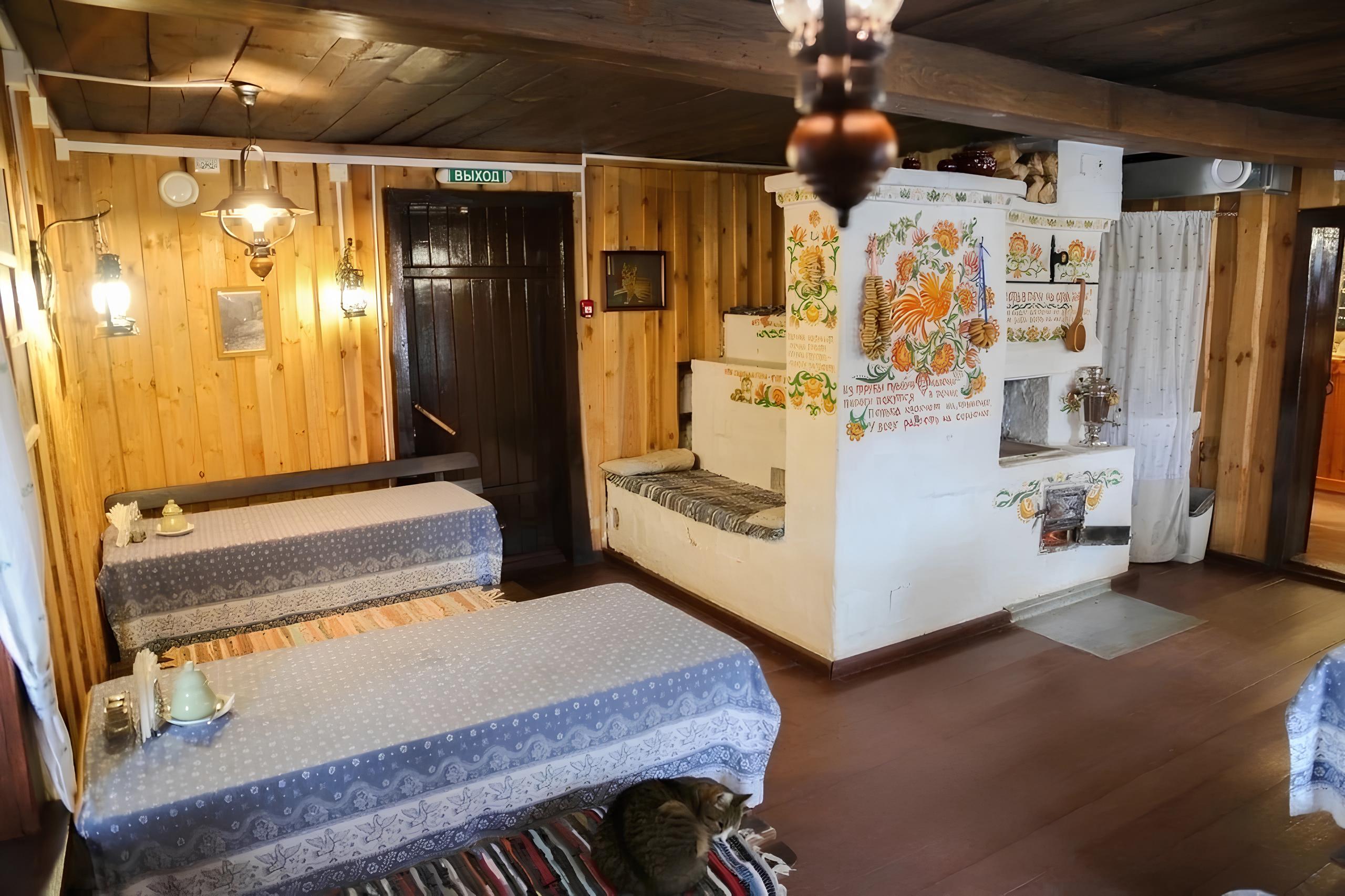 «Блинная» в Изборске. Подкрепиться перед выездом в Печоры можно прямо у стен Изборского кремля. Располагайтесь за столиком в настоящей русской избе и под кукование кукушки в часах заказывайте блины с местным мёдом или фирменную похлёбку. Запить всё это предложат традиционным ягодным киселём.