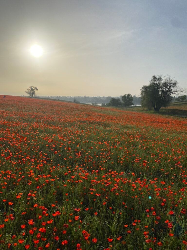 Если поехать в Кыргызстан в мае, можно застать цветение маковых полей. «Наконец-то посидим в маке!» — сказал мой друг. Поездка в пригород Бишкека туда-обратно, профессиональный фотограф и чай из самовара от водителя Валерия обошлись в 450 сом (5,5 долларов на июнь 2022). Хоть маки и сорняк, поля выглядят превосходно.