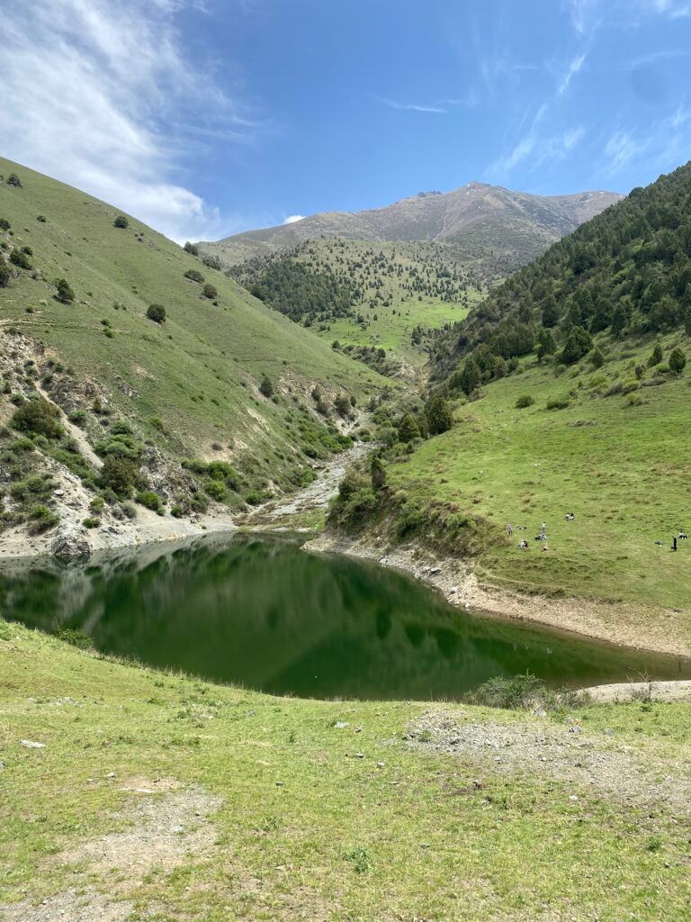 Два очень красивых экскурсовода-близнеца провели нас по урочищу Сокулук и привели на озеро Борулуу. Всё путешествие заняло 10 часов, из них пару — подъем в одну сторону на высоту 600 метров. Потом можно покататься на лодке с экскурсоводом по сине-зелёной глади, и всё это — 650 сом (8 долларов на июнь 2022).