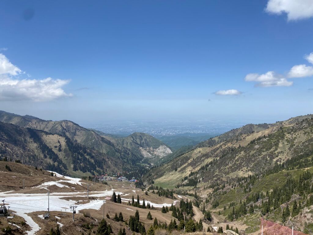 Мы выбрали программу максимум, «Комби 2», туда-обратно на одного человека — 5 000 тенге (11 долларов на июнь 2022). Сначала вы сначала поднимаетесь до горного курорта Шымбулак, с которого видно Алматы. Дорога до этой смотровой площадки по канатке заняла 20 минут.