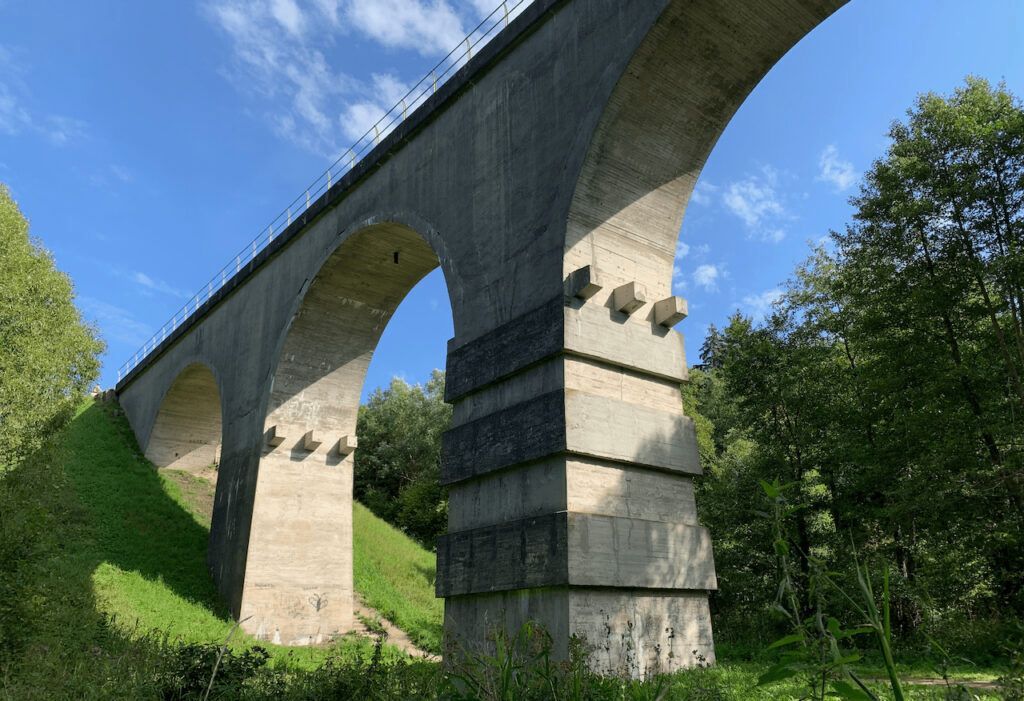 По пути в парк не пропустите интересные местечки. Близ поселка Токарева Нестеровского района — огромный бетонный мост высотой 25 метров, нависший над рекой Красная. Мост можно осмотреть и сверху, и снизу.