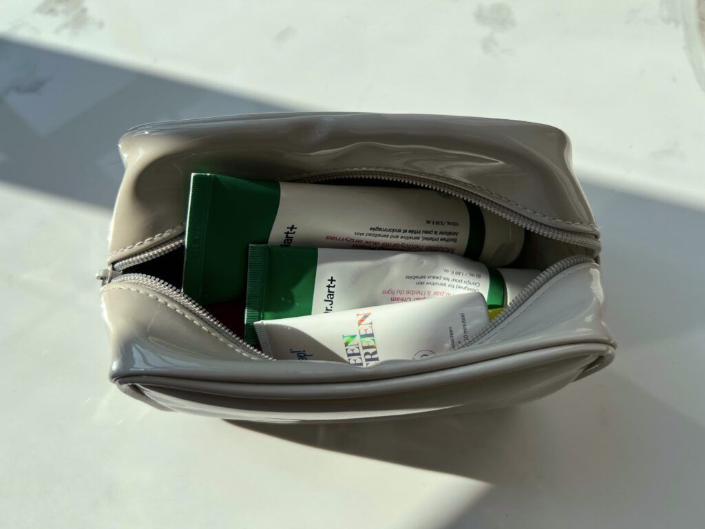 Ещё одна моя рекомендация — иметь для поездок водонепроницаемые косметички. Один раз у меня пролился шампунь, но благодаря пластику другие вещи не пострадали. Поэтому я стараюсь не использовать под жидкости тканевые косметички.