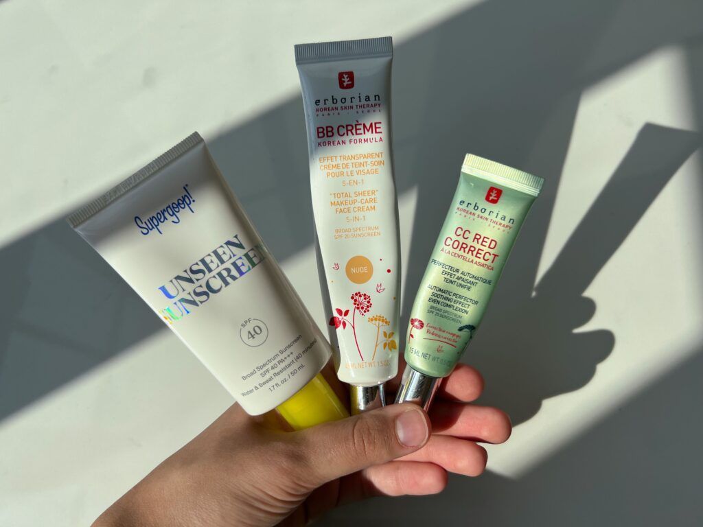 Ежедневно использую защиту от солнца — у меня Supergoop Unseen Sunscreen. Этот SPF не виден на коже, он не оставляет следов, и у него лёгкий аромат.
