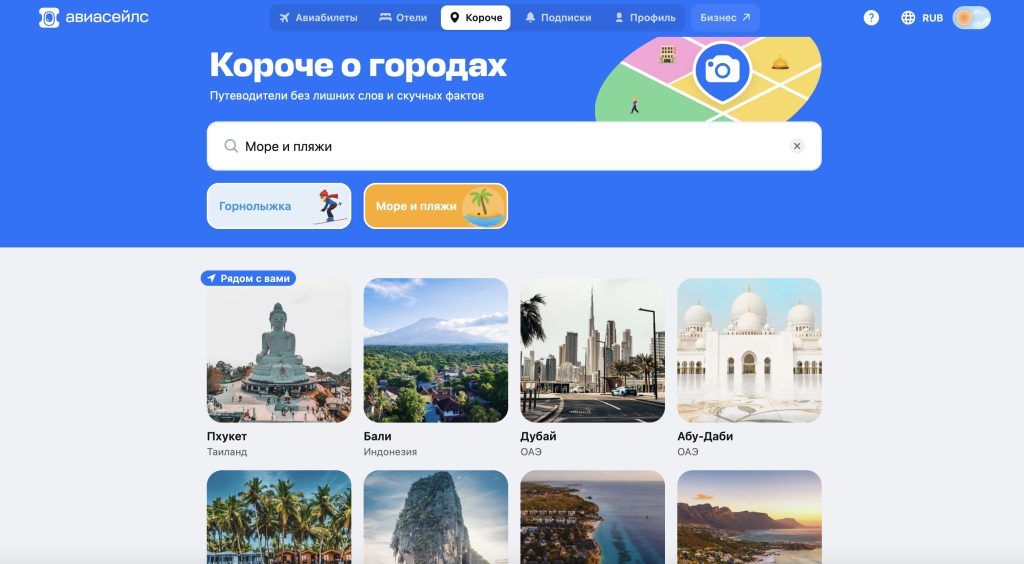 Если захотите решить вопрос с облачностью более радикально, заходите в раздел с путеводителями Короче на сайте Авиасейлс и выбирайте одно из мест подборки «Море и пляжи». Там точно и солнечно, и тепло.
