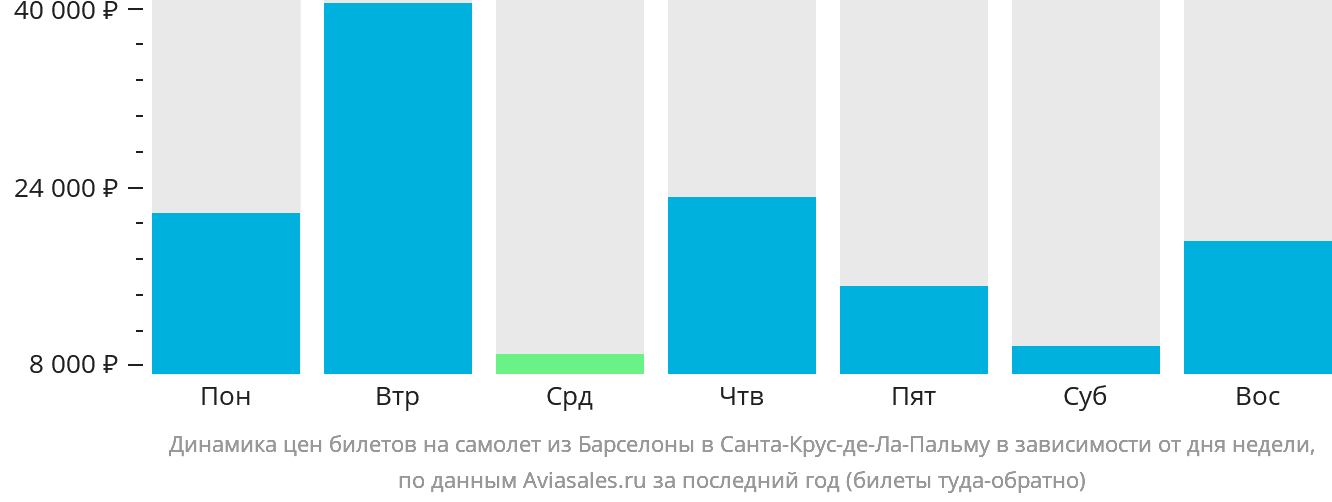 Расстояние между Барселоной и Санта-Крус-де-ла-Пальмой — 2293 км. Больше подробностей о маршруте можно найти в разделе «Общая информация о рейсах».