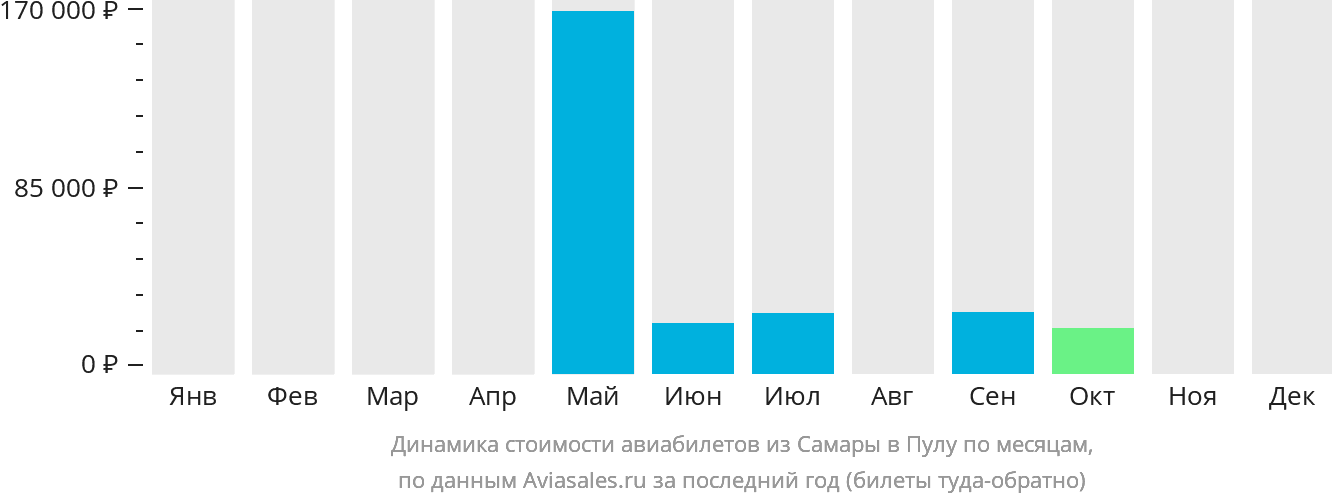 Расстояние между Самарой и Пулой — 2765 км. Больше подробностей о маршруте можно найти в разделе «Общая информация о рейсах».