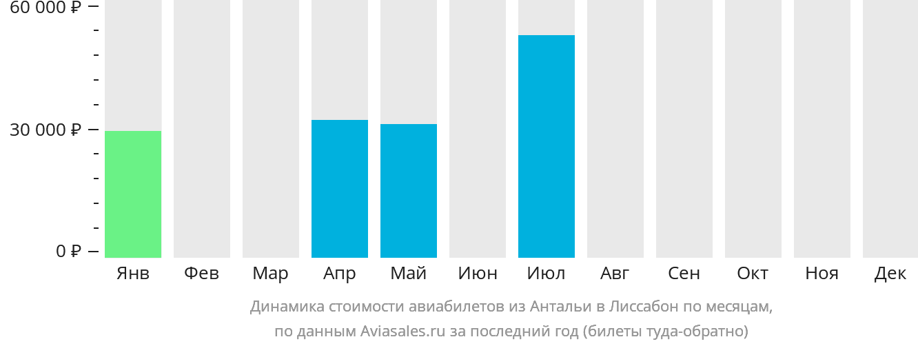 Расстояние между Антальей и Лиссабоном — 3486 км. Больше подробностей о маршруте можно найти в разделе «Общая информация о рейсах».