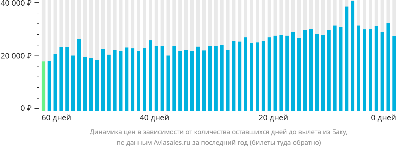 В зависимости от количества дней, оставшихся до вылета, цена билета на самолёт из Баку может измениться более чем на 50%.