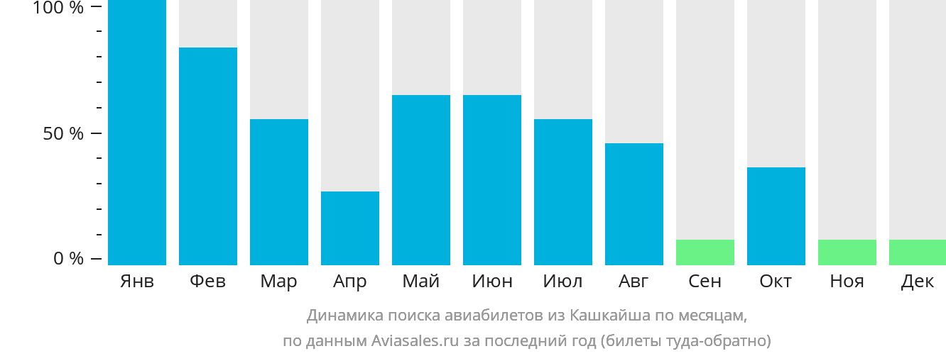 Чаще всего билеты из Кашкайша берут на . Низким сезоном для покупки билетов считается октябрь, ноябрь и декабрь.