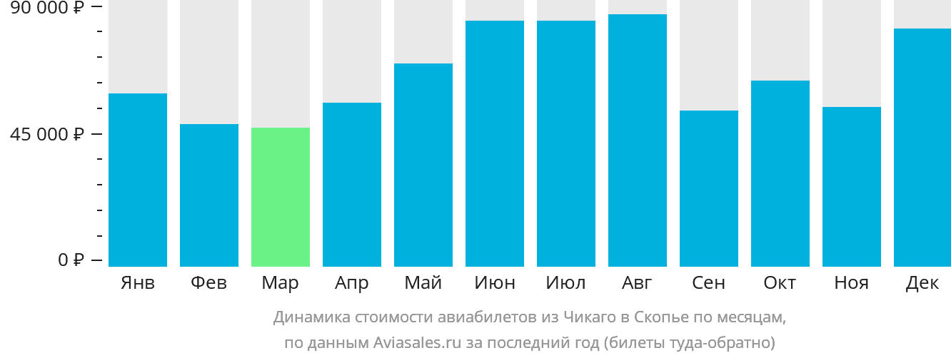 Расстояние между Чикаго и Скопье — 8307 км. Больше подробностей о маршруте можно найти в разделе «Общая информация о рейсах».
