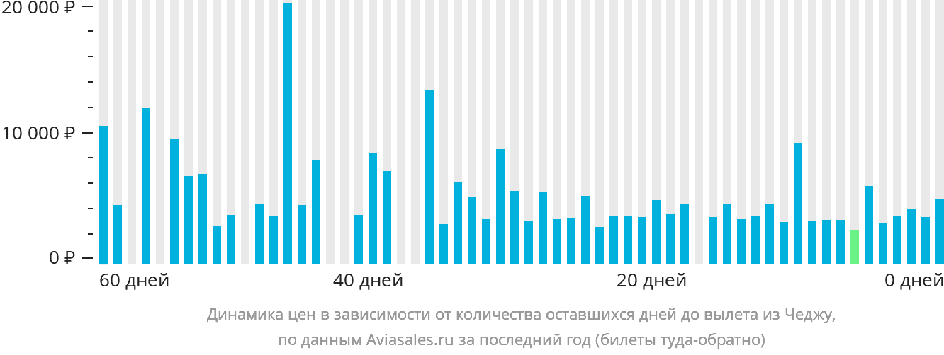 В зависимости от количества дней, оставшихся до вылета, цена билета на самолёт из Чеджу может измениться более чем на 500%.