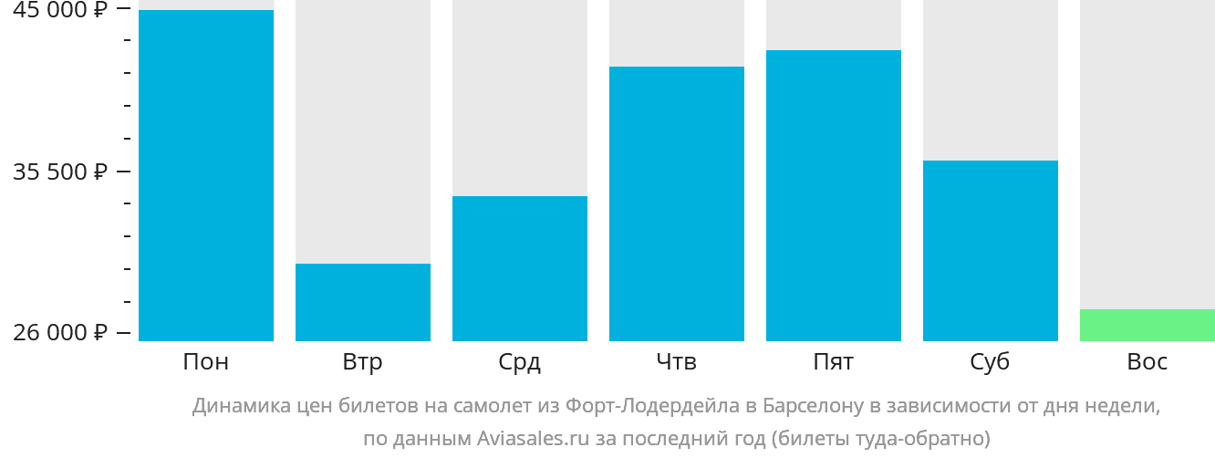 Расстояние между Форт-Лодердейлом и Барселоной — 7515 км. Больше подробностей о маршруте можно найти в разделе «Общая информация о рейсах».