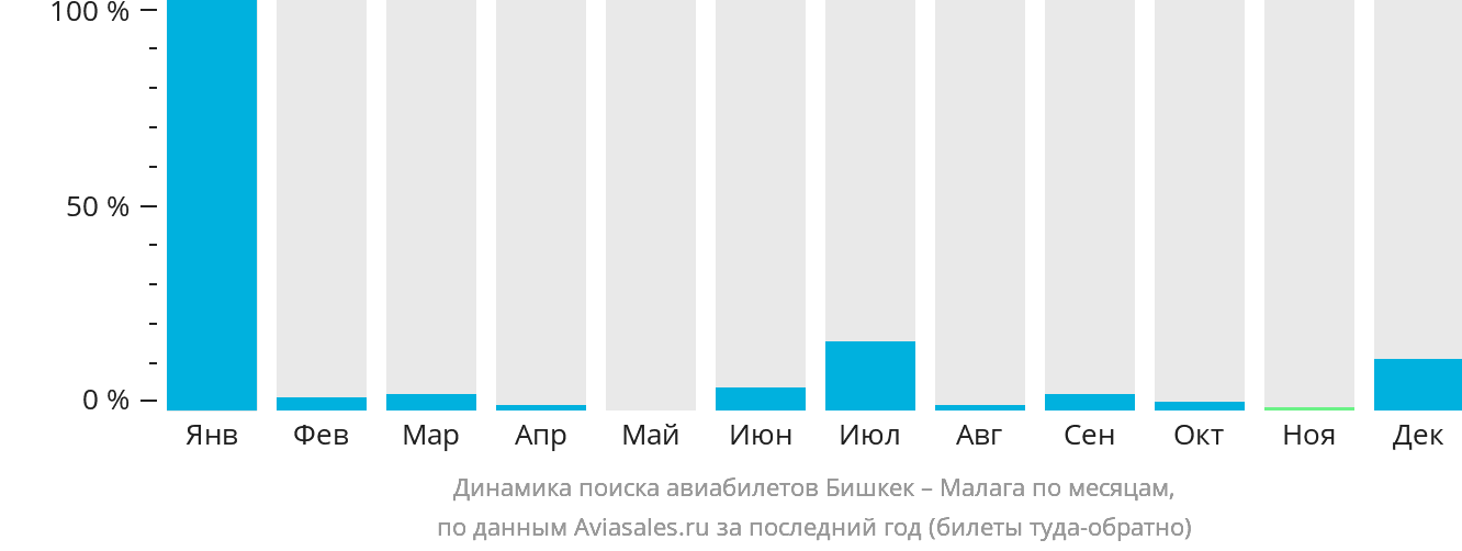 Расстояние между Бишкеком и Малагой — 6515 км. Больше подробностей о маршруте можно найти в разделе «Общая информация о рейсах».