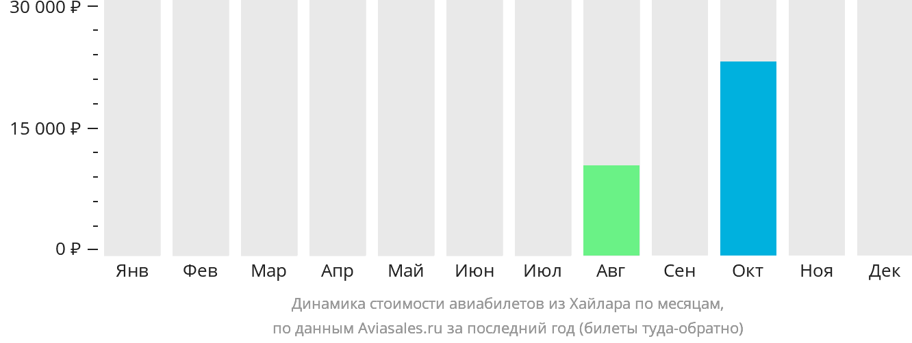 Чаще всего билеты из Хайлара берут на апрель, май и октябрь. Низким сезоном для покупки билетов считается январь, март и июнь.