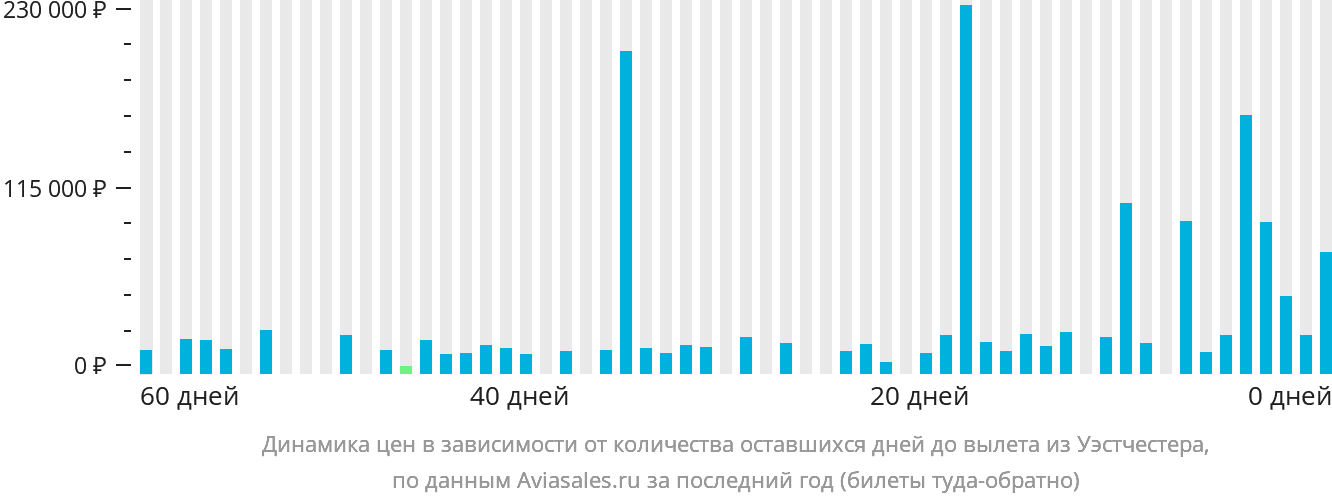 Чаще всего билеты из Уэстчестера берут на январь, февраль и ноябрь. Низким сезоном для покупки билетов считается апрель, июль и сентябрь.