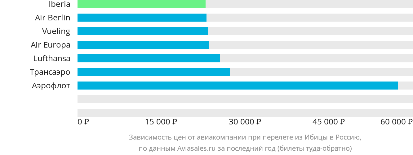 Статистика поможет выбрать рейс, ориентируясь на свои финансовые возможности, а также пожелания в плане комфорта и условий перелёта. Наиболее низкие цены на авиабилеты из Ибицы в Россию предлагает Iberia, самые высокие цены — Аэрофлот.