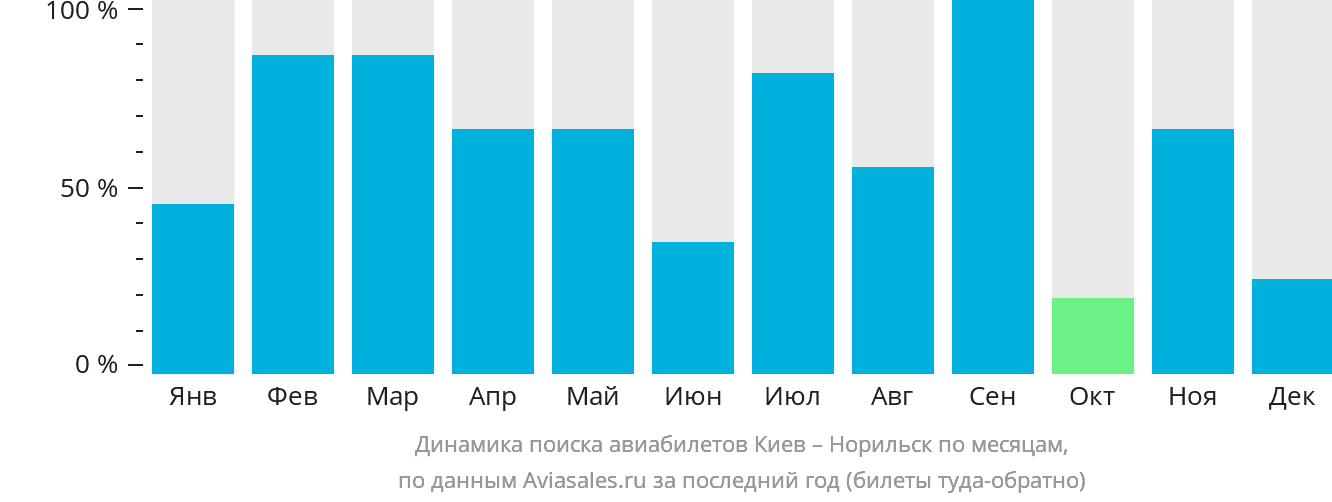 Расстояние между Киевом и Норильском — 3601 км. Больше подробностей о маршруте можно найти в разделе «Общая информация о рейсах».