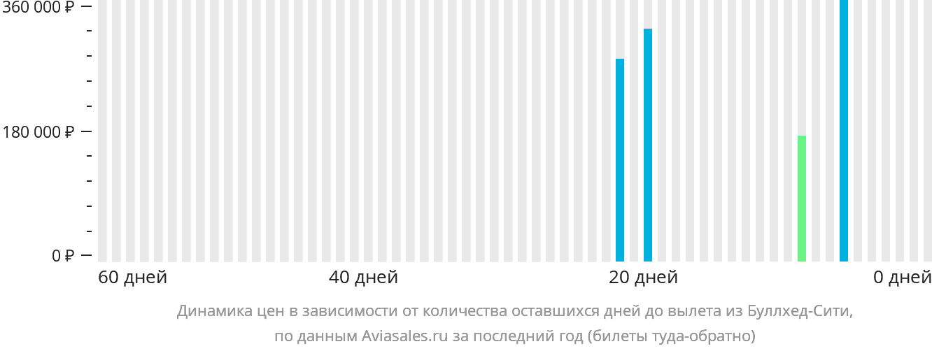 Чаще всего билеты из Буллхед-Сити берут на . Низким сезоном для покупки билетов считается октябрь, ноябрь и декабрь.
