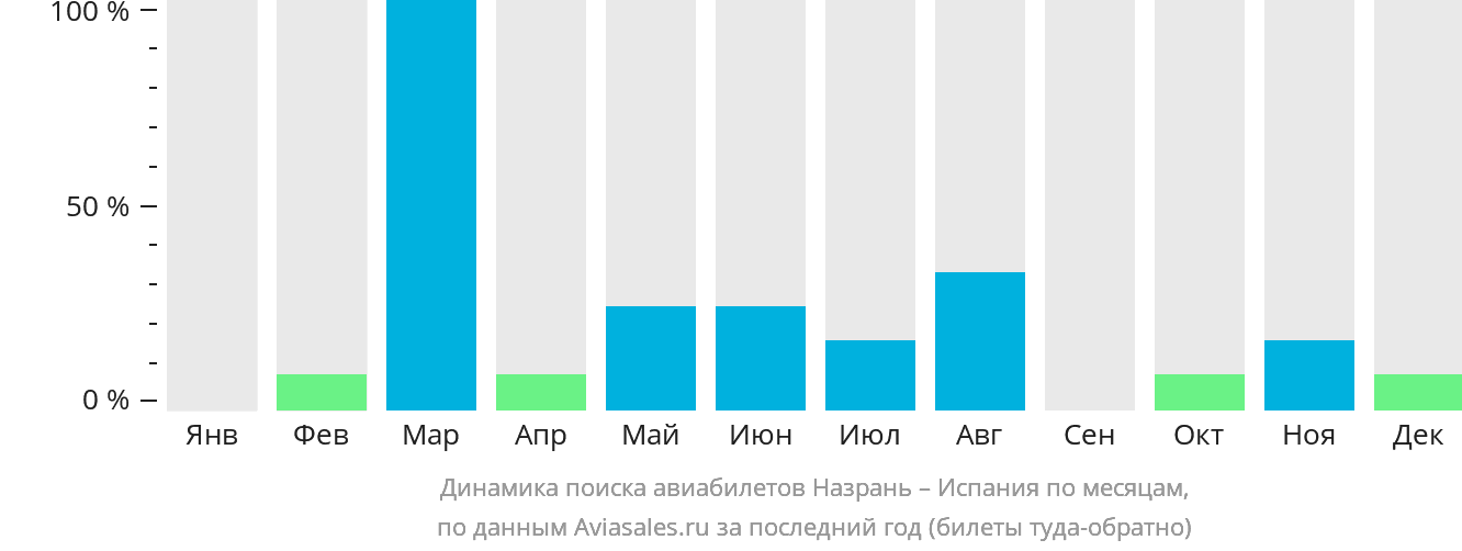 Динамика поиска авиабилетов из Назрани в Испанию по месяцам