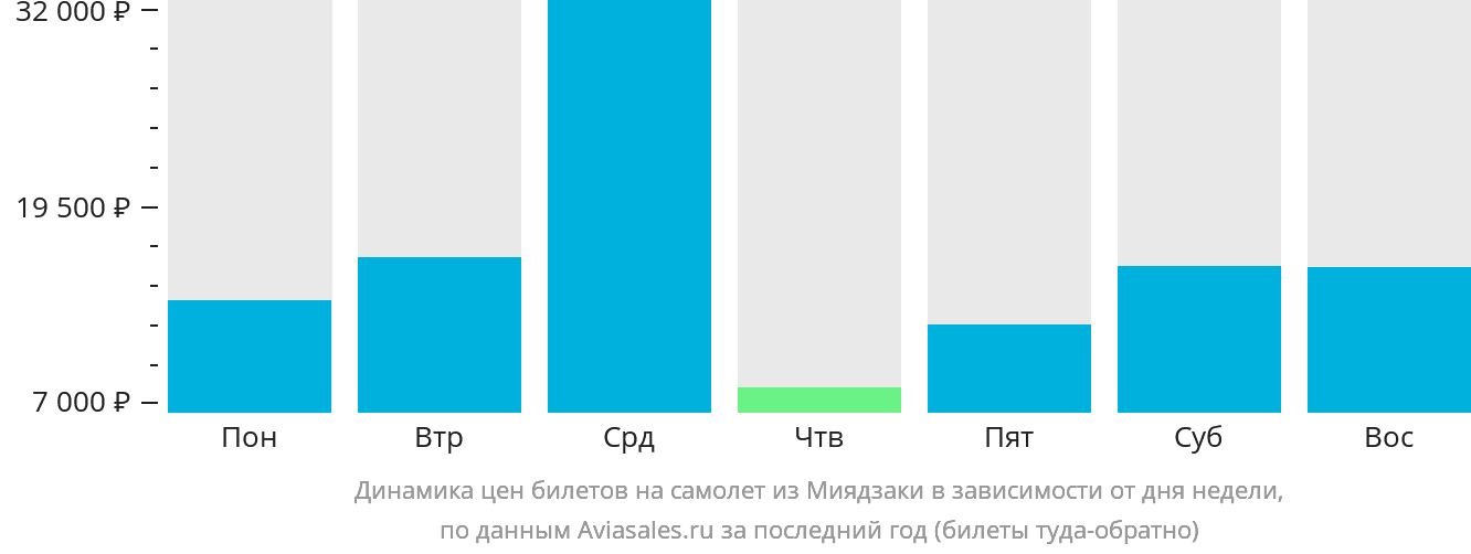 Чаще всего билеты из Миядзаки берут на март, апрель и май. Низким сезоном для покупки билетов считается июль, сентябрь и октябрь.