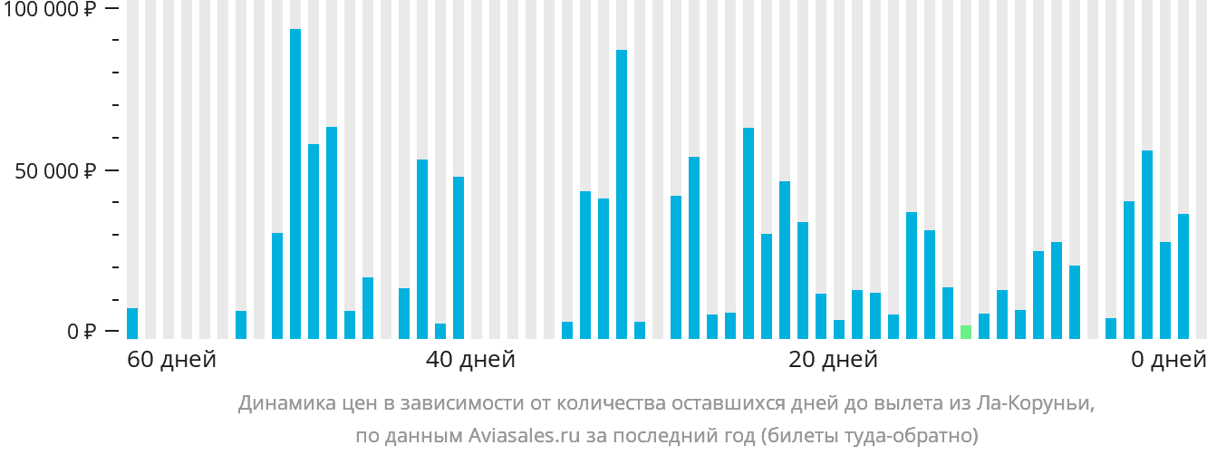В зависимости от количества дней, оставшихся до вылета, цена билета на самолёт из Ла-Коруньи может измениться более чем на 264%.