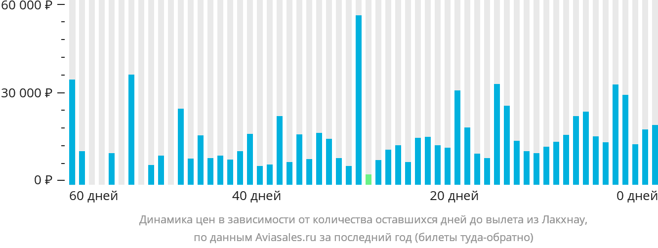 В зависимости от количества дней, оставшихся до вылета, цена билета на самолёт из Лакхнау может измениться более чем на 167%.