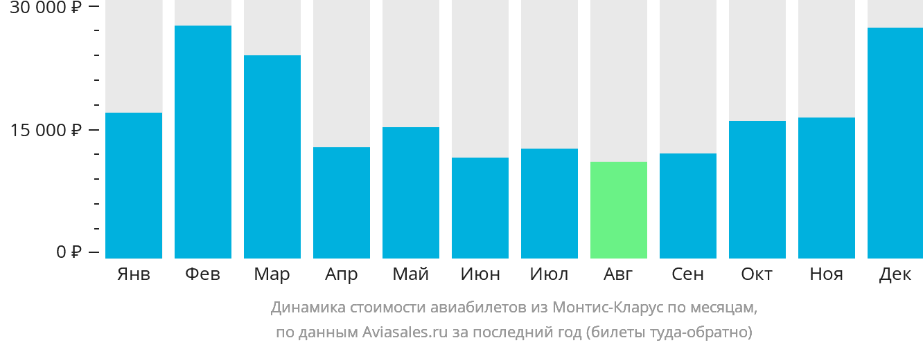 Чаще всего билеты из Монтис-Кларус берут на январь, октябрь и декабрь. Низким сезоном для покупки билетов считается март, апрель и сентябрь.