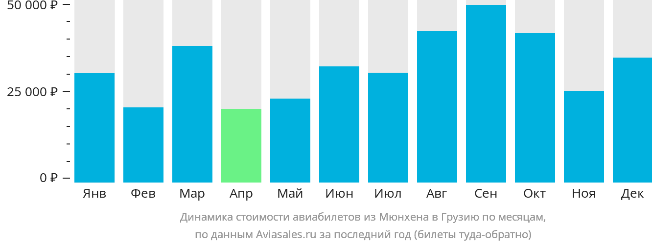 Стоимость перелёта всегда зависит от времени путешествия. График позволит сравнить цены на авиабилеты из Мюнхена в Грузию, проследить динамику изменения их стоимости и найти оптимальное предложение.