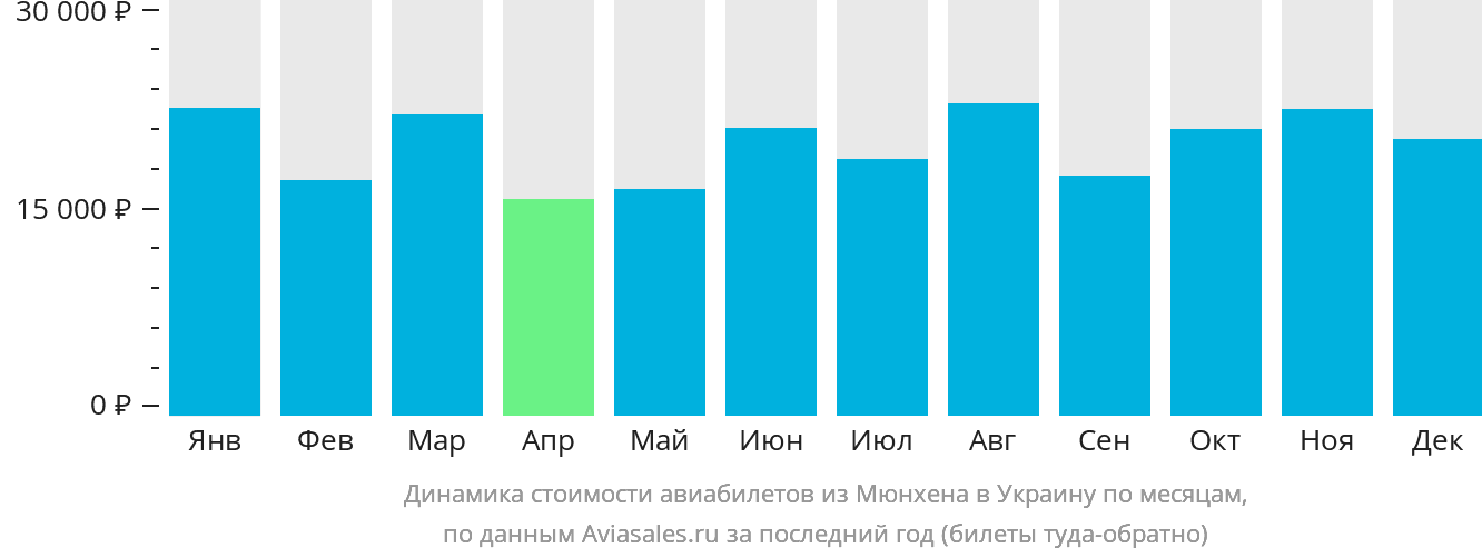 Стоимость перелёта всегда зависит от времени путешествия. График позволит сравнить цены на авиабилеты из Мюнхена в Украину, проследить динамику изменения их стоимости и найти оптимальное предложение.