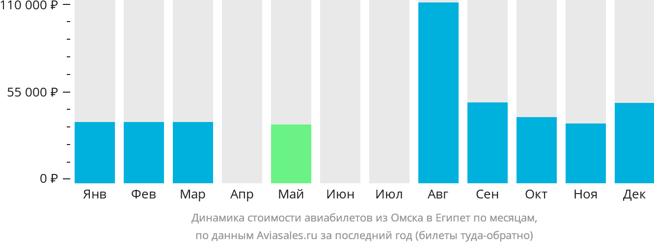 Стоит отметить, что направление Омск – Египет пользуется наибольшей популярностью в январе и ноябре. В этот период средняя стоимость авиабилетов составляет 34 199₽ .