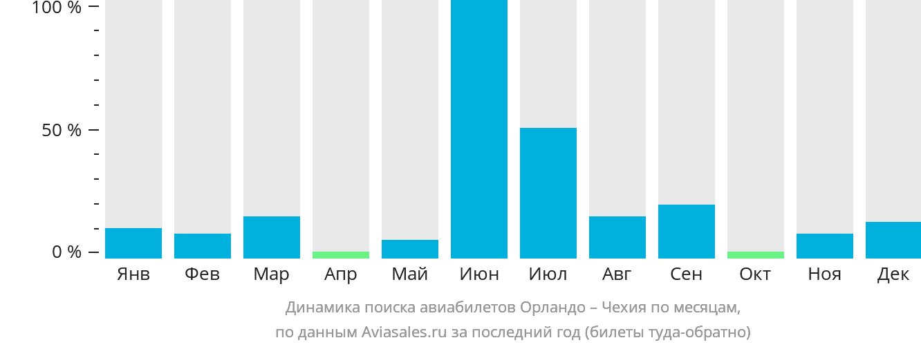 Стоит отметить, что направление Орландо – Чехия пользуется наибольшей популярностью в июне.