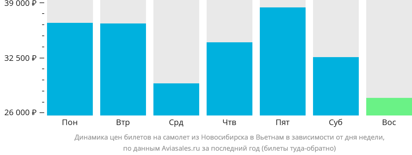 По статистике, самый доступный вариант рейсов из Новосибирска в Вьетнам — по воскресеньям,