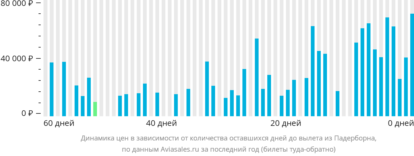 В зависимости от количества дней, оставшихся до вылета, цена билета на самолёт из Падерборна может измениться более чем на 82%.
