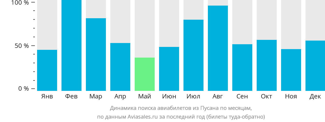 Чаще всего билеты из Пусана берут на июнь, июль и октябрь. Низким сезоном для покупки билетов считается январь, февраль и март.