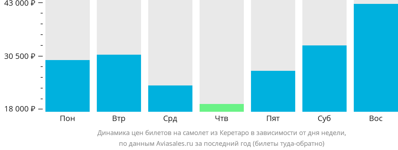 Чаще всего билеты из Керетаро берут на январь, май и июль. Низким сезоном для покупки билетов считается март, июнь и ноябрь.