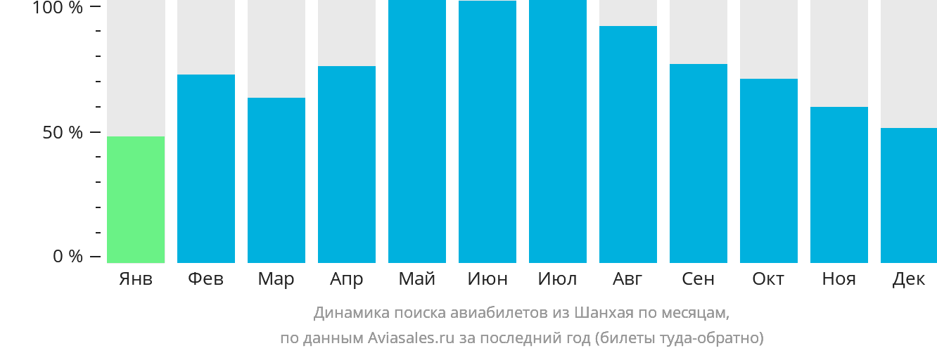 Чаще всего билеты из Шанхая берут на апрель, октябрь и ноябрь. Низким сезоном для покупки билетов считается февраль, июль и август.