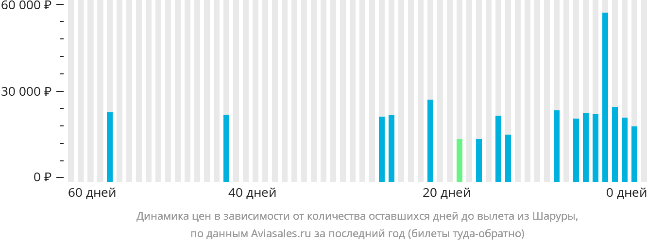 В зависимости от количества дней, оставшихся до вылета, цена билета на самолёт из Шаруры может измениться более чем на 138%.