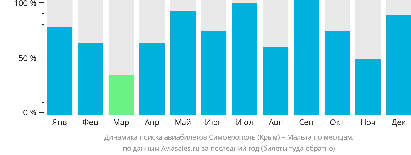 Расстояние между Симферополем и Мальтой — 1932 км. Больше подробностей о маршруте можно найти в разделе «Общая информация о рейсах».